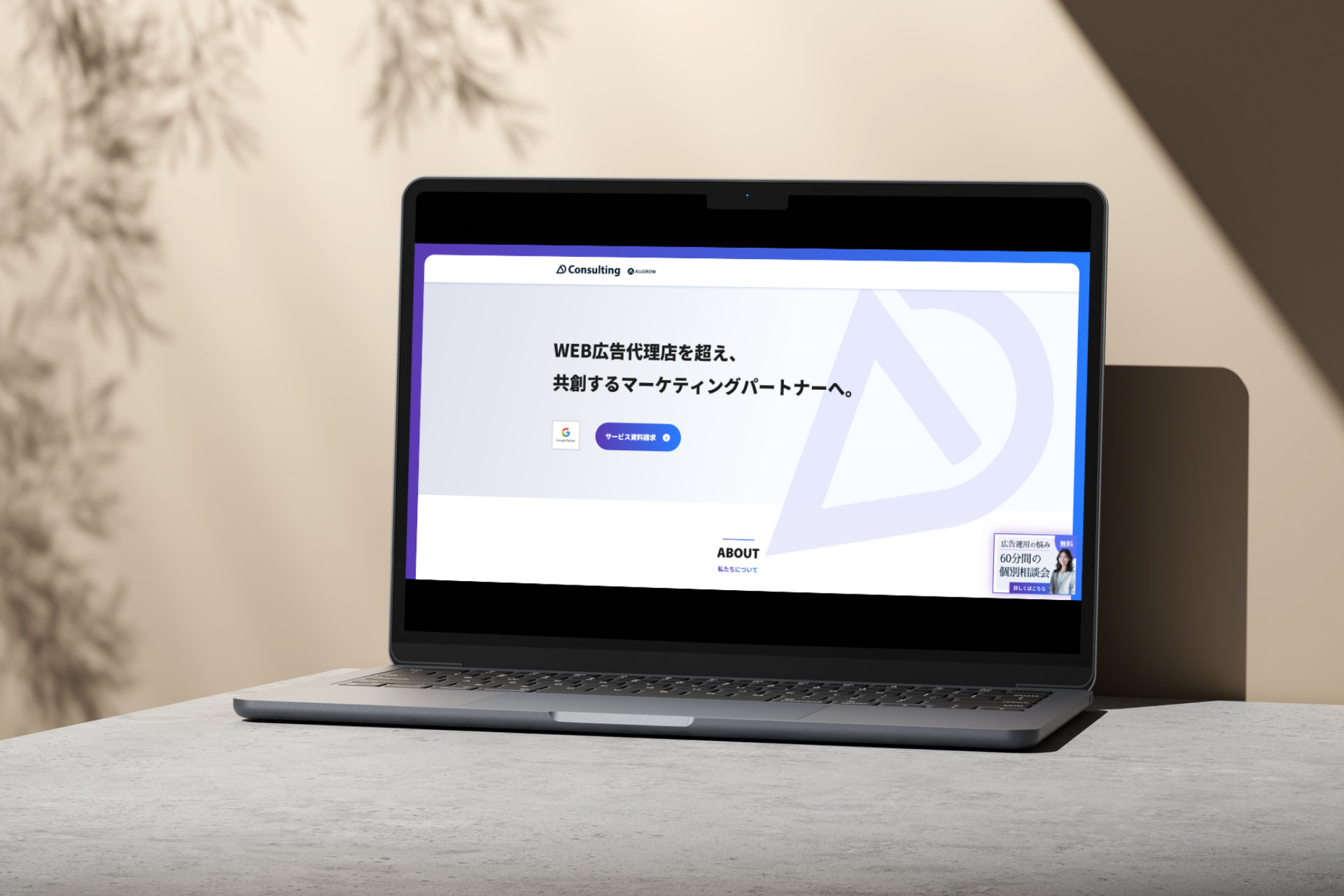 本サイトは、企業の成長を支える広告運用支援サービス「AD Consulting」をはじめ、60分無料広告相談会や資料請求といった主要導線を再設計し、必要な情報に迷わずたどり着ける構成に刷新しています。